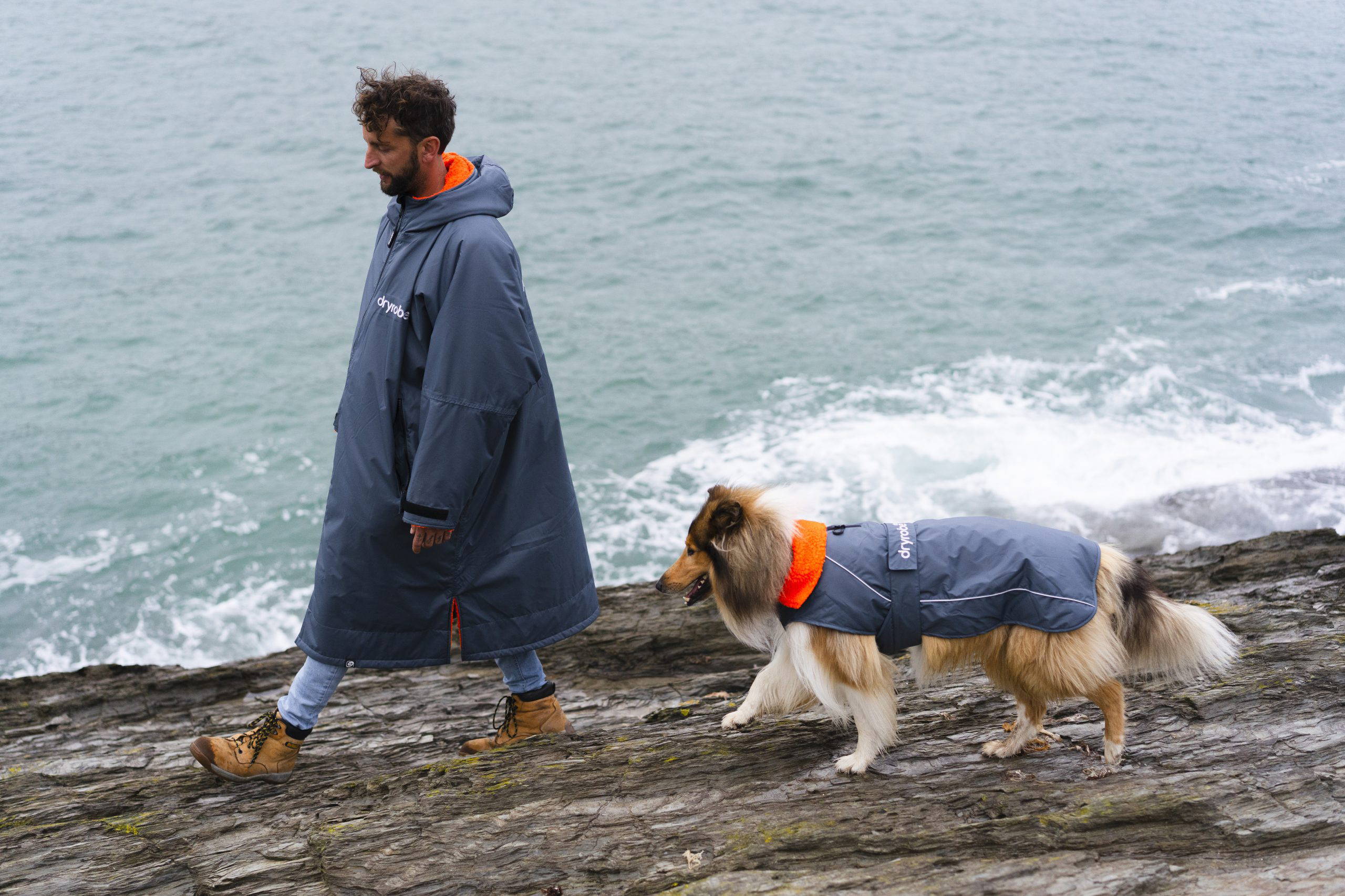 The dryrobe dog dark grey orange also has a matching counterpart for owners in the advance long sleeve, why not be a matching duo!