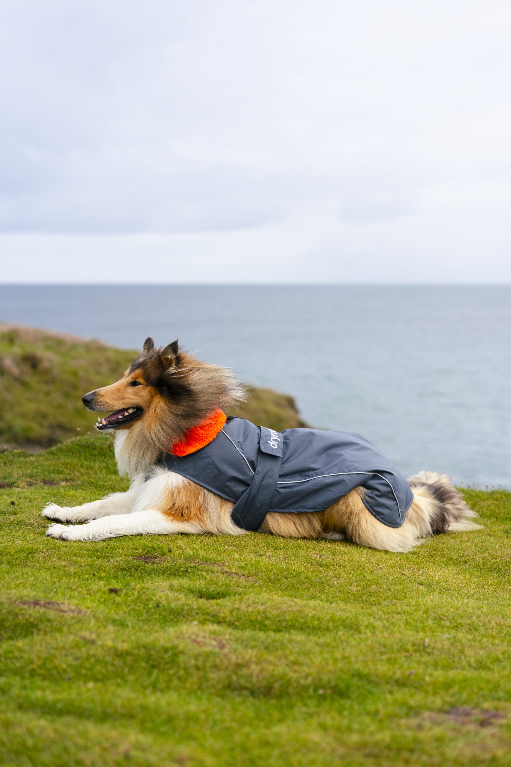 The dryrobe® dog slides over the dog’s head and features an expandable elasticated gusset panel and an adjustable chest strap.